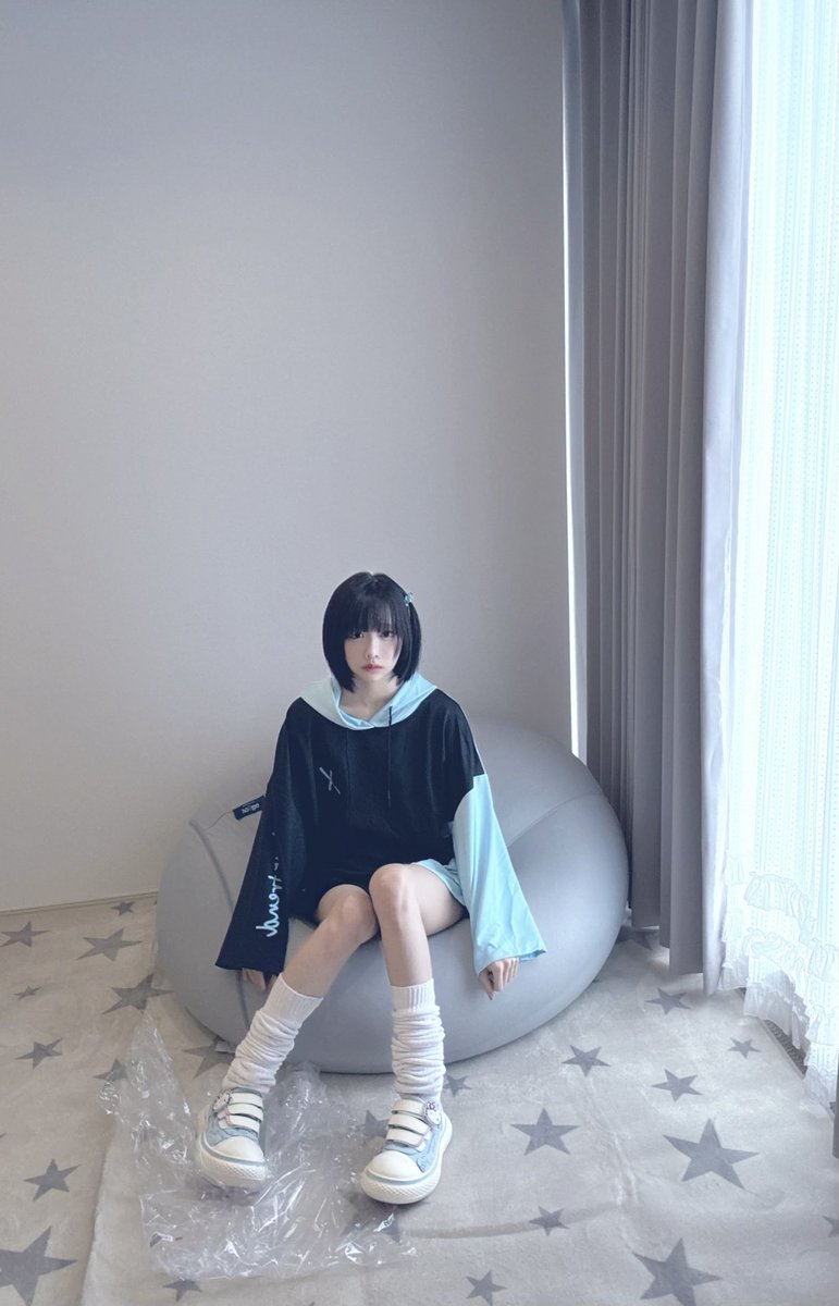 あのは「修学旅行これ着ていっていい?」とコメントし、黒と水色のパーカーを着たソロショットを2枚投稿。1枚目にはビーズクッションでくつろぐ姿が、2枚目には「ケロロ軍曹」のフィギュアと同じポーズを取る様子が収められている。