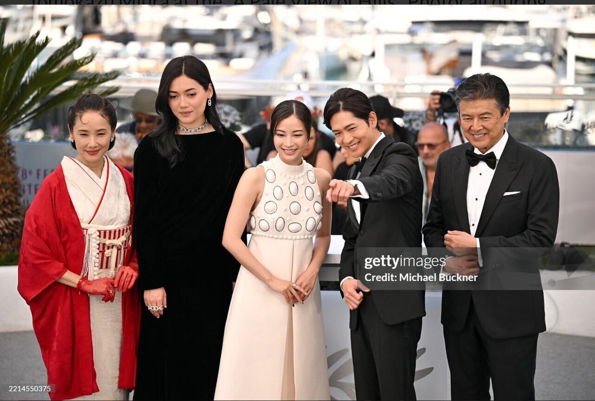 カンヌ国際映画祭に出席した(左から)三浦友和、松下洸平、広瀬すず、カミラ・アイコ、吉田羊(C)2025 A Pale View of Hills Film Partners
