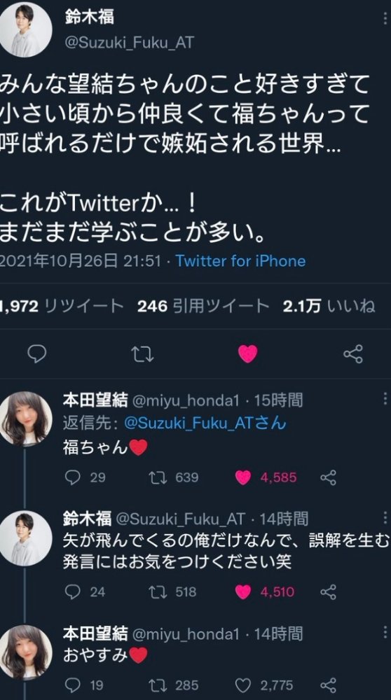望結は鈴木と3歳の時、子役事務所で知り合ったといい「本当に幼なじみなんです。(抱きしめるしぐさをして)『福ちゃん、ギュ~』ぐらいの感覚だったのに、中学・高校あたりから明らかに対応が冷たくなったんです」と打ち明けた。