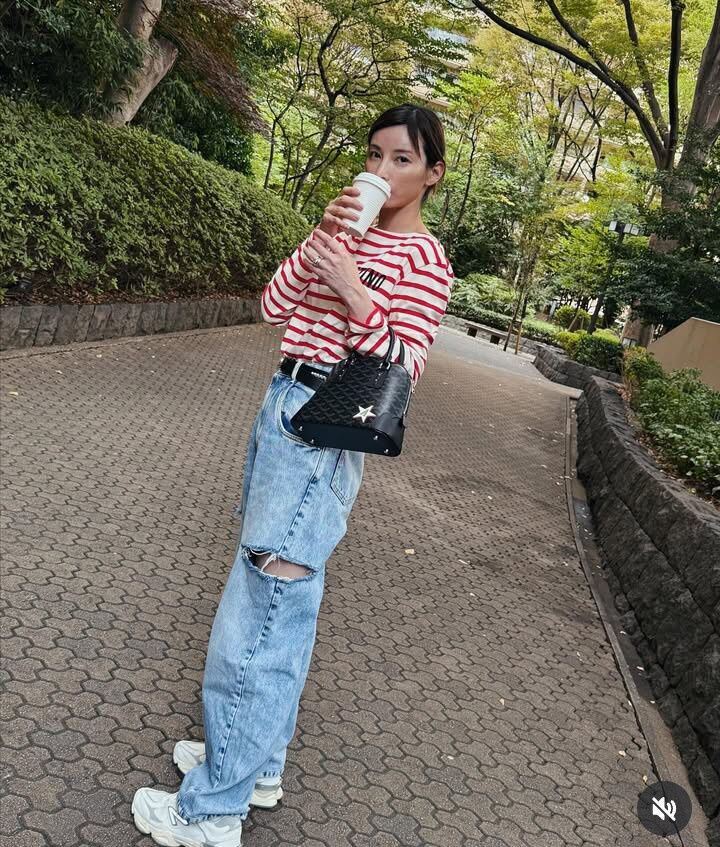 ボーダーのロングスリーブTシャツにデニム、スニーカーを合わせカジュアルながらもセンスが光るコーデも披露した。