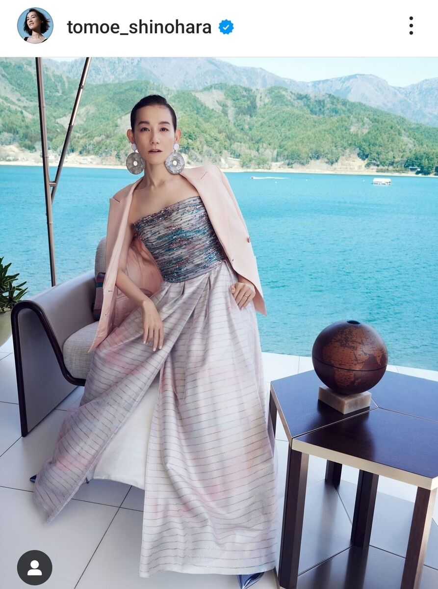 「#ジョルジオアルマーニ」などのハッシュタグをつけ、海をバックに撮影。髪をキュッとまとめ、大ぶりのピアスは抜群の存在感。デコルテ全開のベアトップドレスを着こなした。別人のようなモデル姿に、フォロワーは「ステキ!!とてもお似合いです」「キレイ」「素敵!!」と絶賛した。