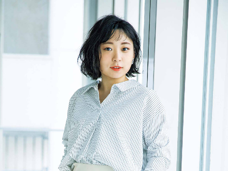 明るい雰囲気の現在とは異なり、写真の女性はロングの茶髪に胸元が開いた白のノースリーブシャツ、ピンクのバラを手に妖艶な雰囲気を漂わせた。