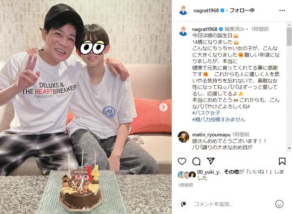 6月24日に自身のインスタグラムで長女との2ショット写真を公開したお笑いトリオ・ネプチューンの名倉潤。長女の顔にはパッチリしたマンガ目のスタンプが押されているのだが、顔が小さいこと、色が白いこと、サラサラなショートカットのヘアスタイル、桜色の唇、きれいな歯列、細長い腕と足などは写っているため、ネット上では「この写真だけでボーイッシュなかわいい子だということがわかる」と話題になっている。