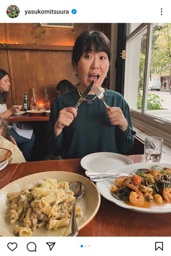 お笑いコンビ・オアシズの光浦靖子(53)が2日までにインスタグラムを更新。留学中のカナダで食事をする様子を公開した。