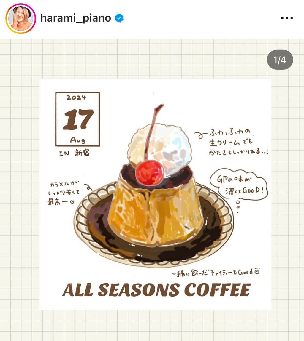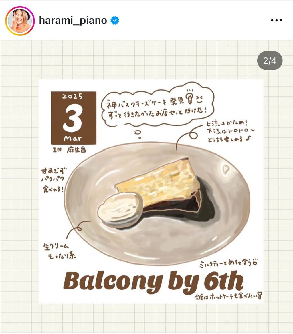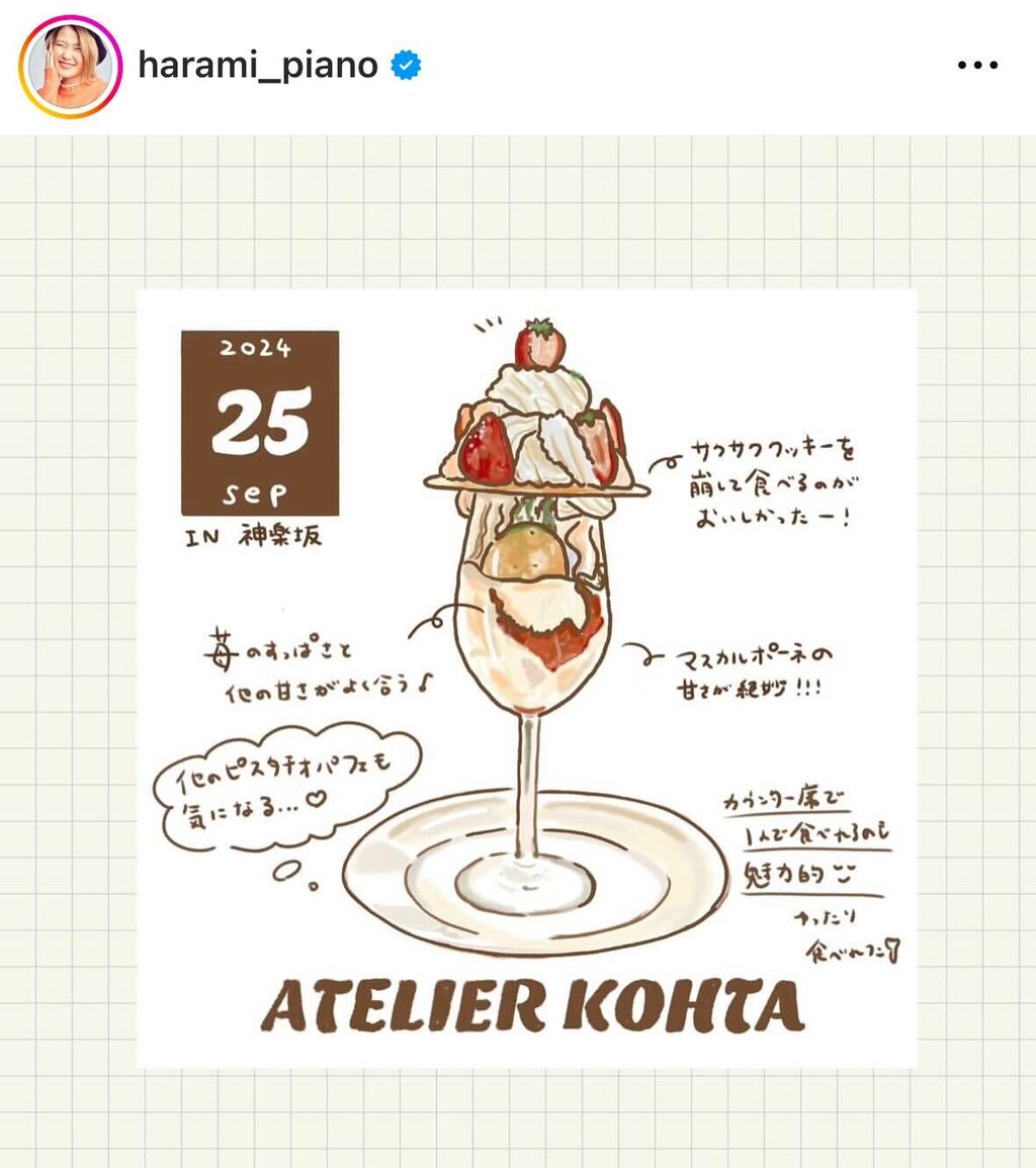 ピアニストのハラミちゃんが29日までにインスタグラムを更新。スイーツのイラストを披露した。