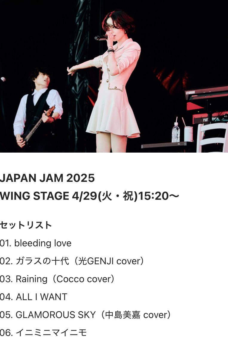 29日からスタートした日本最大の春フェス「ジャパンジャム(JAPAN JAM)2025」にソロ活動後、初のライブ出演となった平手。
